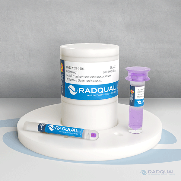 Este produto patenteado, exclusivo da RadQual, permite a calibração cruzada do seu scanner PET, calibrador de dose e detector de poço, utilizando fontes de Ge-68/Ga-68 rastreáveis pelo NIST. Essas fontes são fornecidas com certificados de calibração que também listam a atividade equivalente de F-18. Este sistema é especialmente útil em estudos de imagem multicêntricos para avaliar vieses e permitir a correção de vieses devido a fatores de instrumentação em estudos PET seriados.